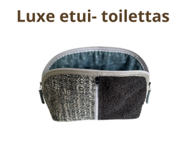 Luxe handgemaakte toilettas van meubelstof en leer- Jennyz