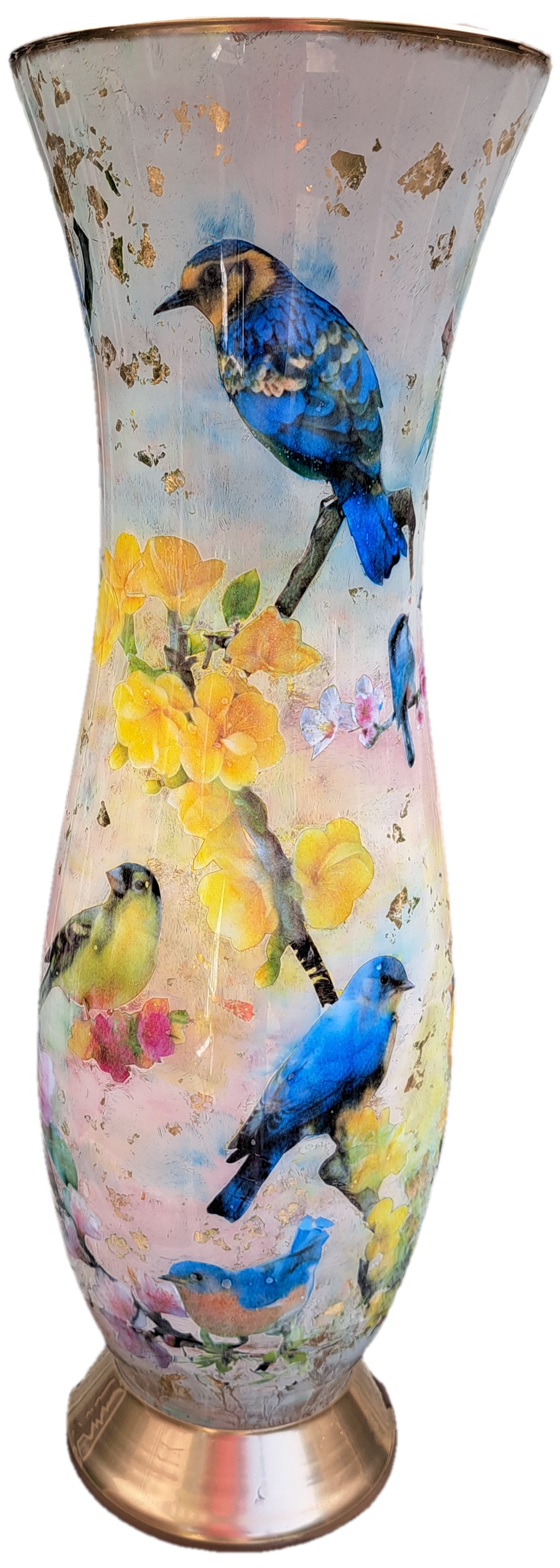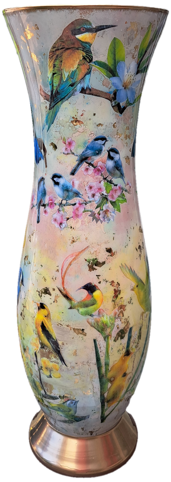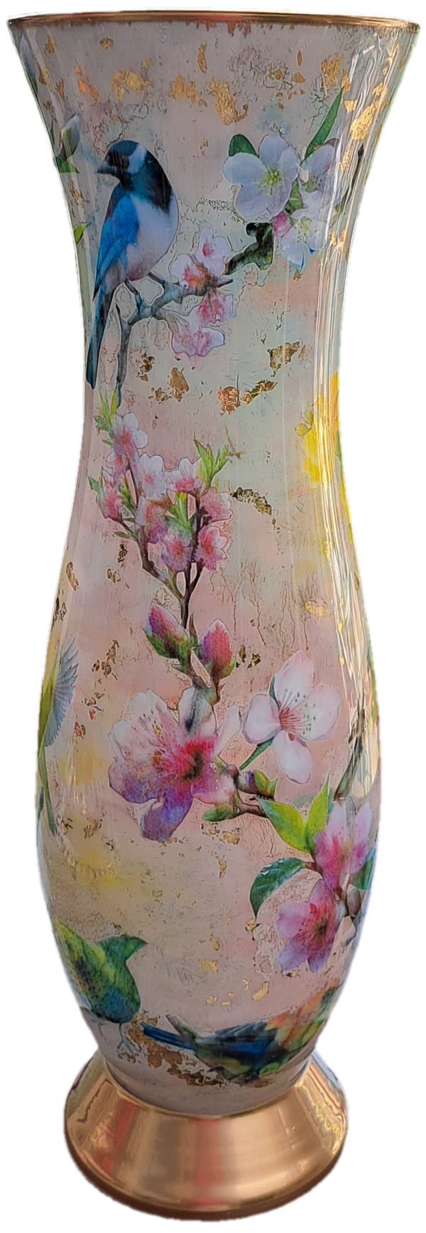 Handgemaakte XL Decoupage Vaas (60cm) met Bloesem en Vogels | Exclusief Kunstwerk van José