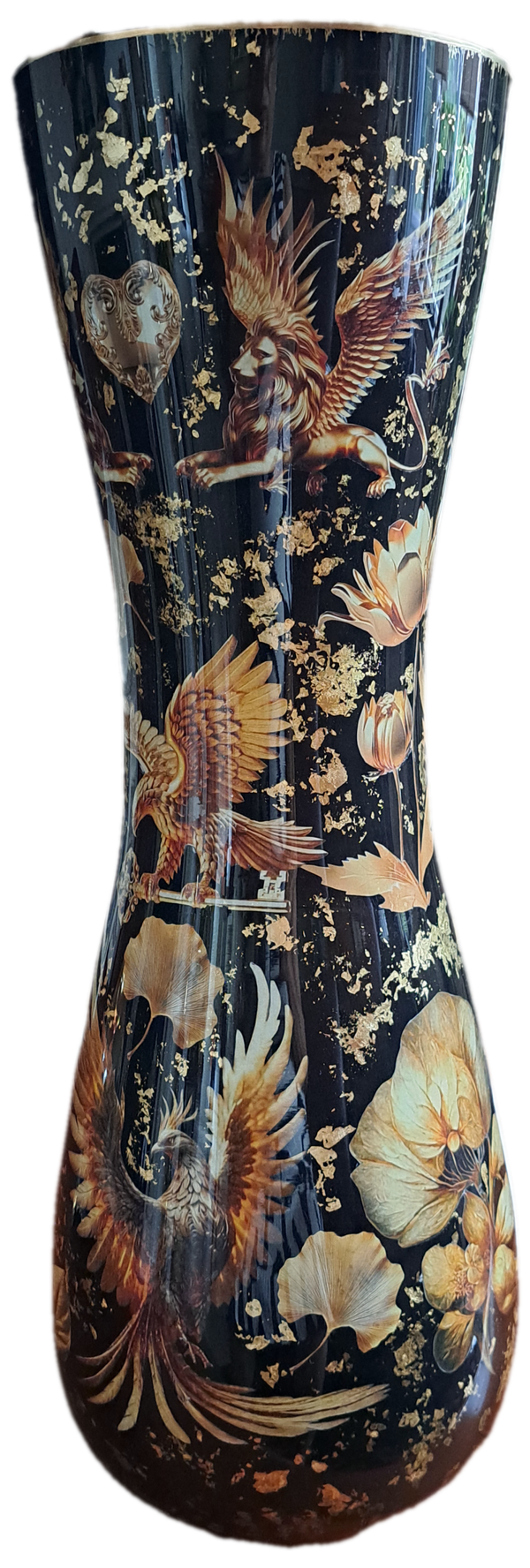 Grote vaas zwart met goud. Een uniek exemplaar, een echte blikvanger!