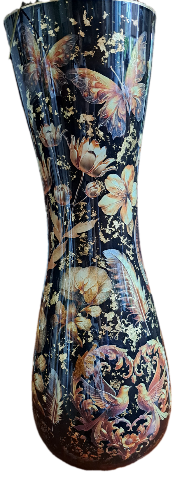 Unieke hand gemaakte vaas van José bewerkt met decoupage techniek en afgewerkt met verschillende laagjes verf en gevernisd!
