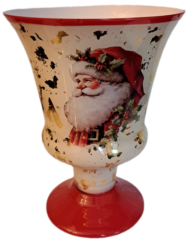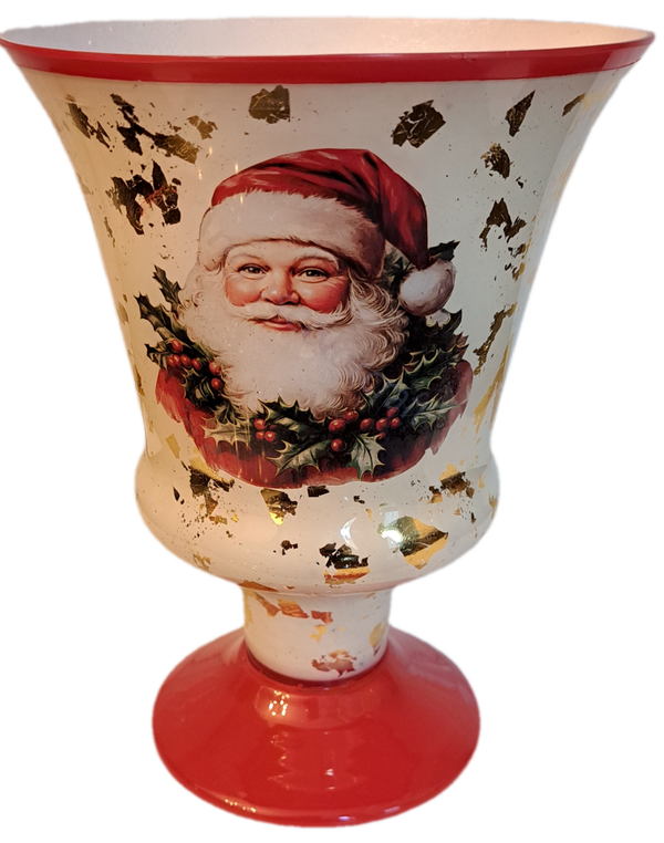 Haal de vrolijkheid van de Kerstman in huis met dit unieke, handgemaakte pronkstuk. Deze Kerstvaas "Santa" van kunstenaar José is uitgevoerd in de traditionele kerstkleuren en is een gegarandeerde blikvanger. Met een hoogte van 28 cm. en 16cm. doorsnede is de vaas ideaal voor het presenteren van kersttakken of gevuld met snoepgoed. De vaas is op unieke wijze aan de binnenkant bewerkt met decoupage-techniek, verf en vernis. Elk exemplaar is handgemaakt en uniek in zijn soort – er zijn géén twee dezelfde! Wees er snel bij.