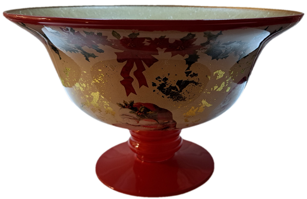 Deze unieke, handgemaakte kerstschaal is het perfecte stuk voor uw feesttafel! De schaal, met een hoogte van 15cm. en een royale doorsnede van 25cm., is ideaal voor het presenteren van kerstsnoepgoed, nootjes of decoratieve stukjes. De schaal is op unieke wijze bewerkt met de decoupage-techniek en afgewerkt met verf en vernis aan de binnenzijde. Elk exemplaar van kunstenaar José is uniek handwerk en garandeert een warme, feestelijke uitstraling.