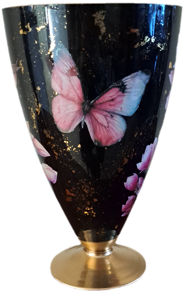 Unieke Techniek: De vaas is van binnenuit bewerkt met de decoupage-techniek, afgewerkt met verschillende laagjes verf en vernis. Dit creëert een fascinerende diepte en beschermde kunst die door het glas heen schijnt.