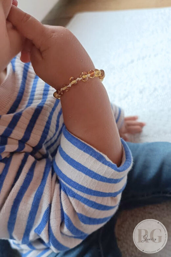 Geef jouw kindje iets bijzonders en liefdevols met dit handgemaakte armbandje van natuurlijke Barnsteen. Elke kraal is zorgvuldig geselecteerd en met de hand geknoopt, wat zorgt voor extra stevigheid en een uniek sieraad.